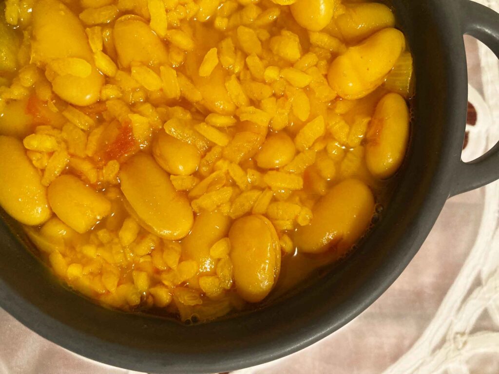 «El arroz con habichuelas es una de las recetas más representativas de la gastronomía murciana. Su origen se remonta a la cocina rural, donde los agricultores aprovechaban los productos de la huerta para elaborar platos sencillos pero nutritivos. A base de arroz, habichuelas secas y hortalizas, este guiso se ha transmitido de generación en generación, manteniendo su esencia como un plato reconfortante para los días más fríos.» Eso dice el Confidencial, y es verdad de la buena.