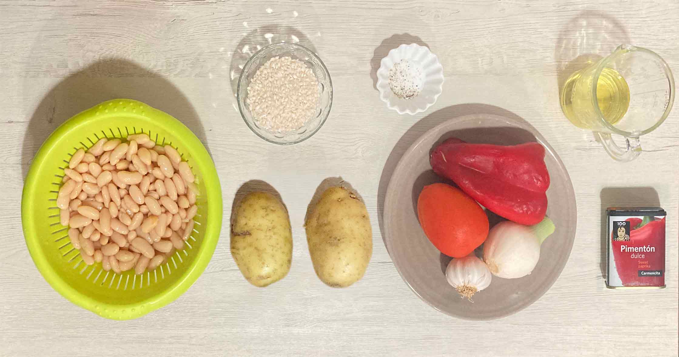 El pimentón dulce y si puede ser de la tierra mejor, las habichuelas si las utilizamos secas las pondremos a remojo la noche antes.