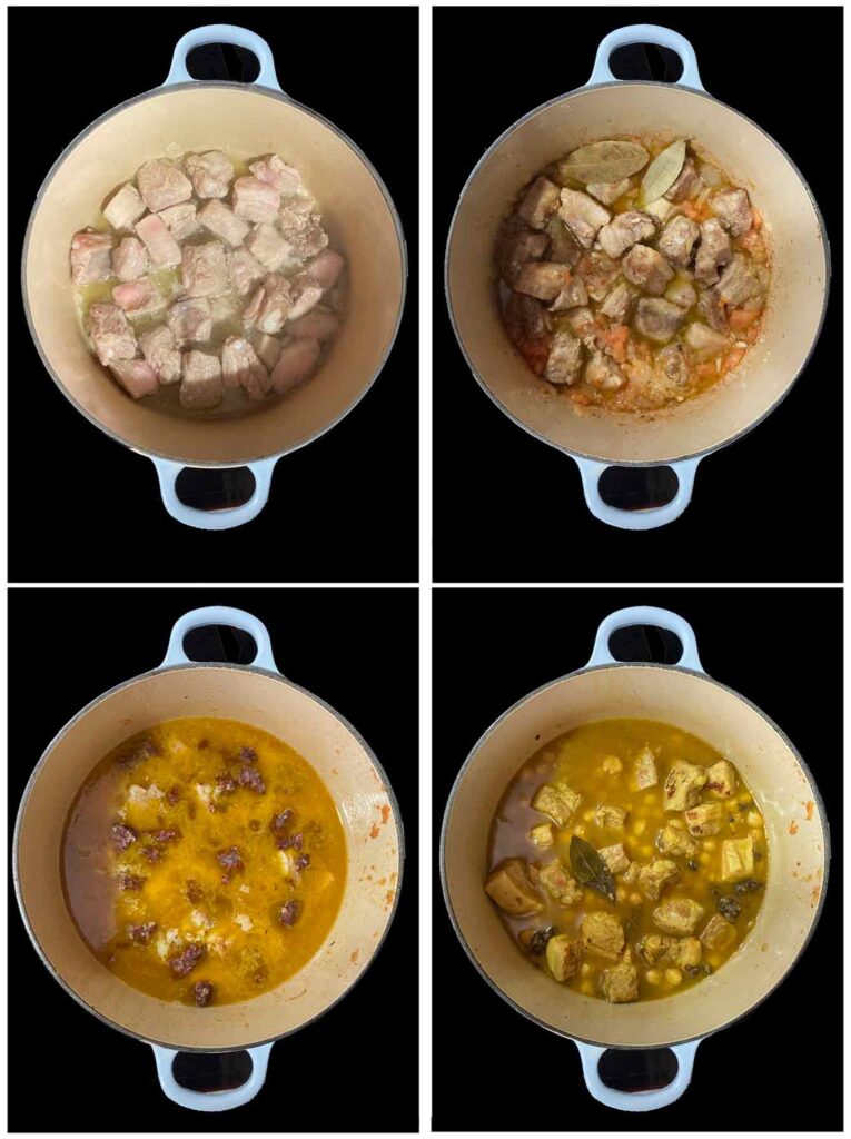 En una cazuela de hierro o cocotte sofreímos las costillas salpimentadas hasta dorar.