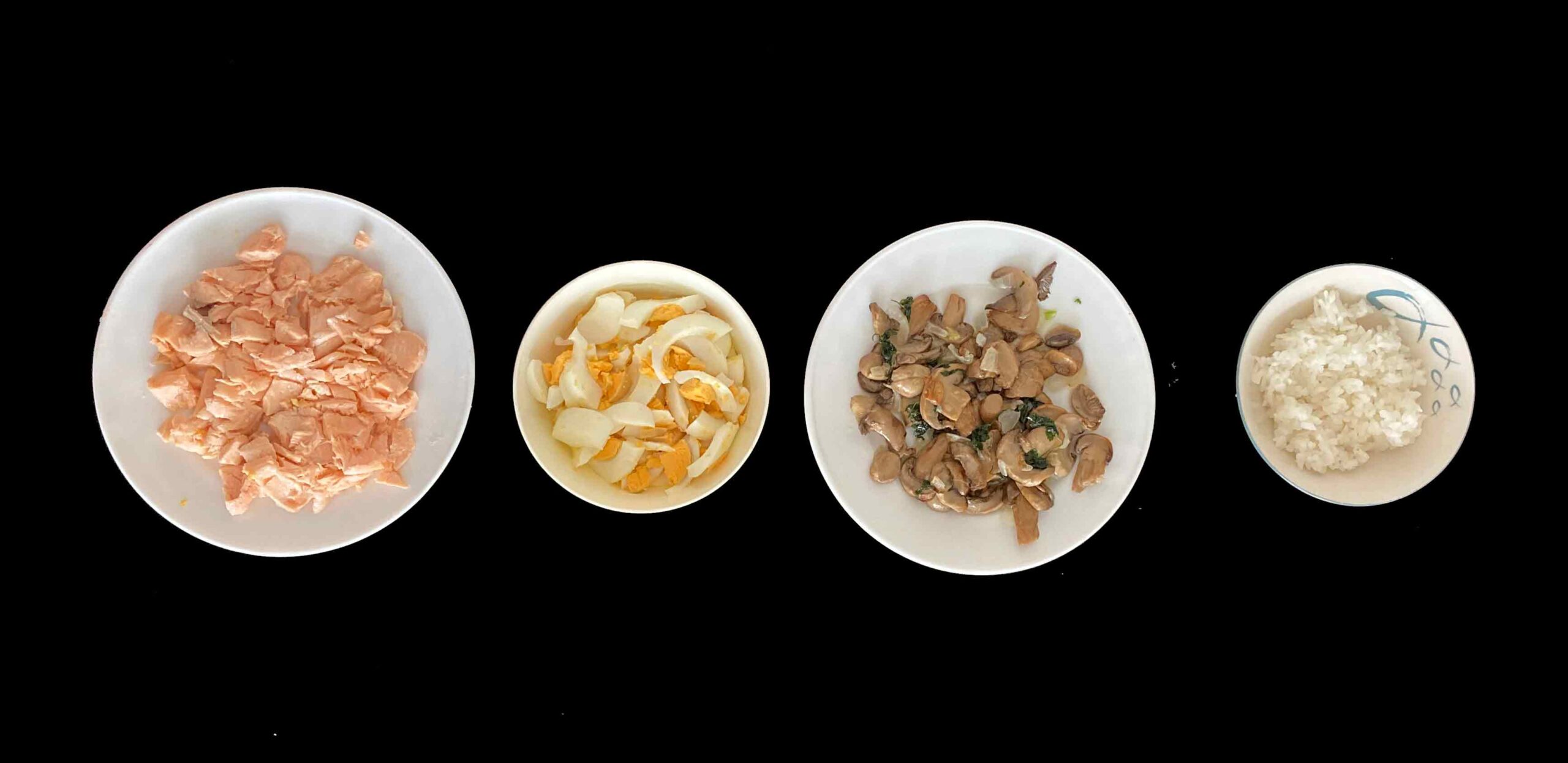 Desmenuzamos el salmón y pelamos los huevos y troceamos.