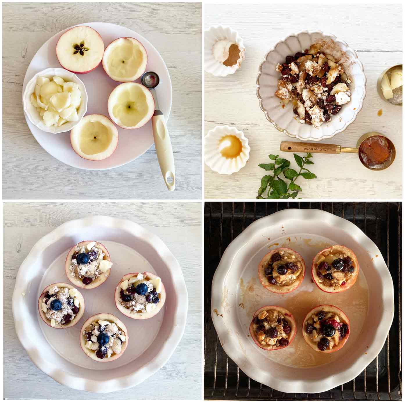 Hacemos un hueco en el centro de cada manzana y reservamos los trocitos que hemos quitado.