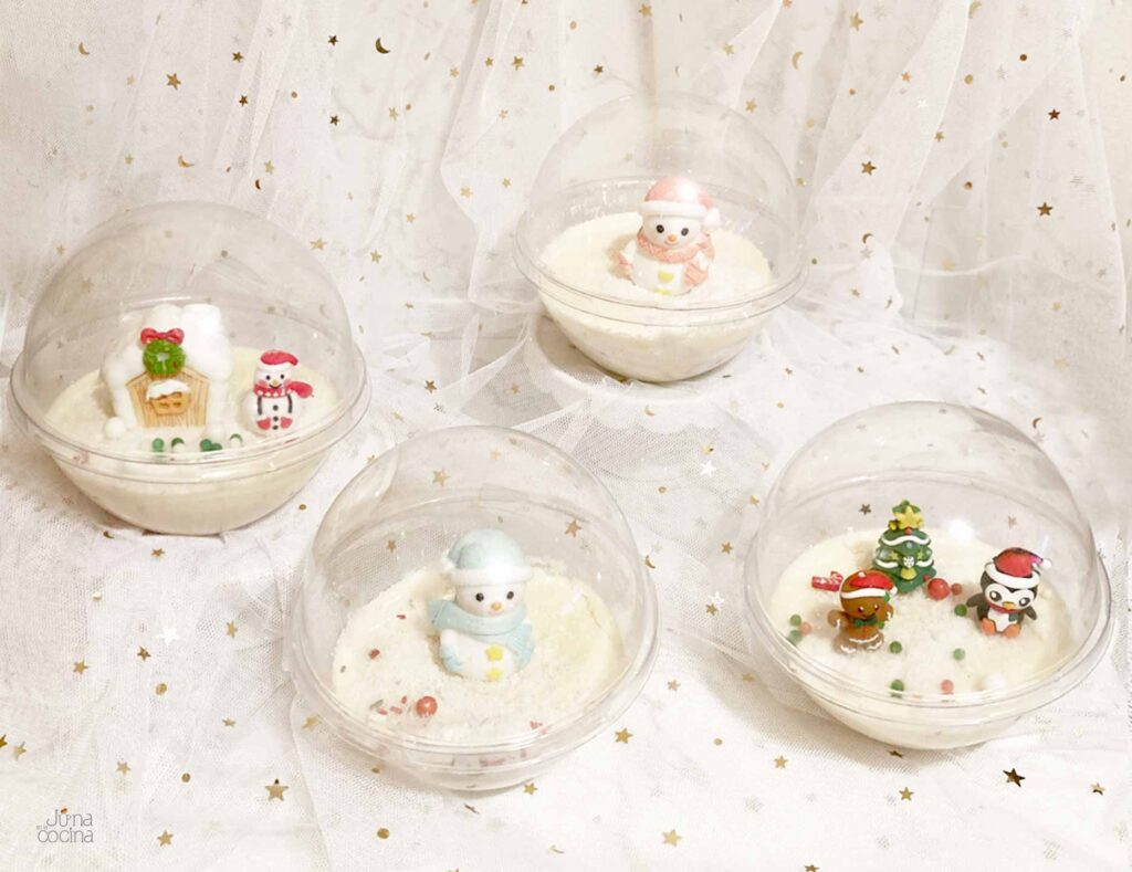 Pasos también muy sencillos, me salieron 4 y los puse en estos cuencos que son bolas transparentes con tapadera, para darles un toque navideño…y con cositas bonitas…dulce Navidad.