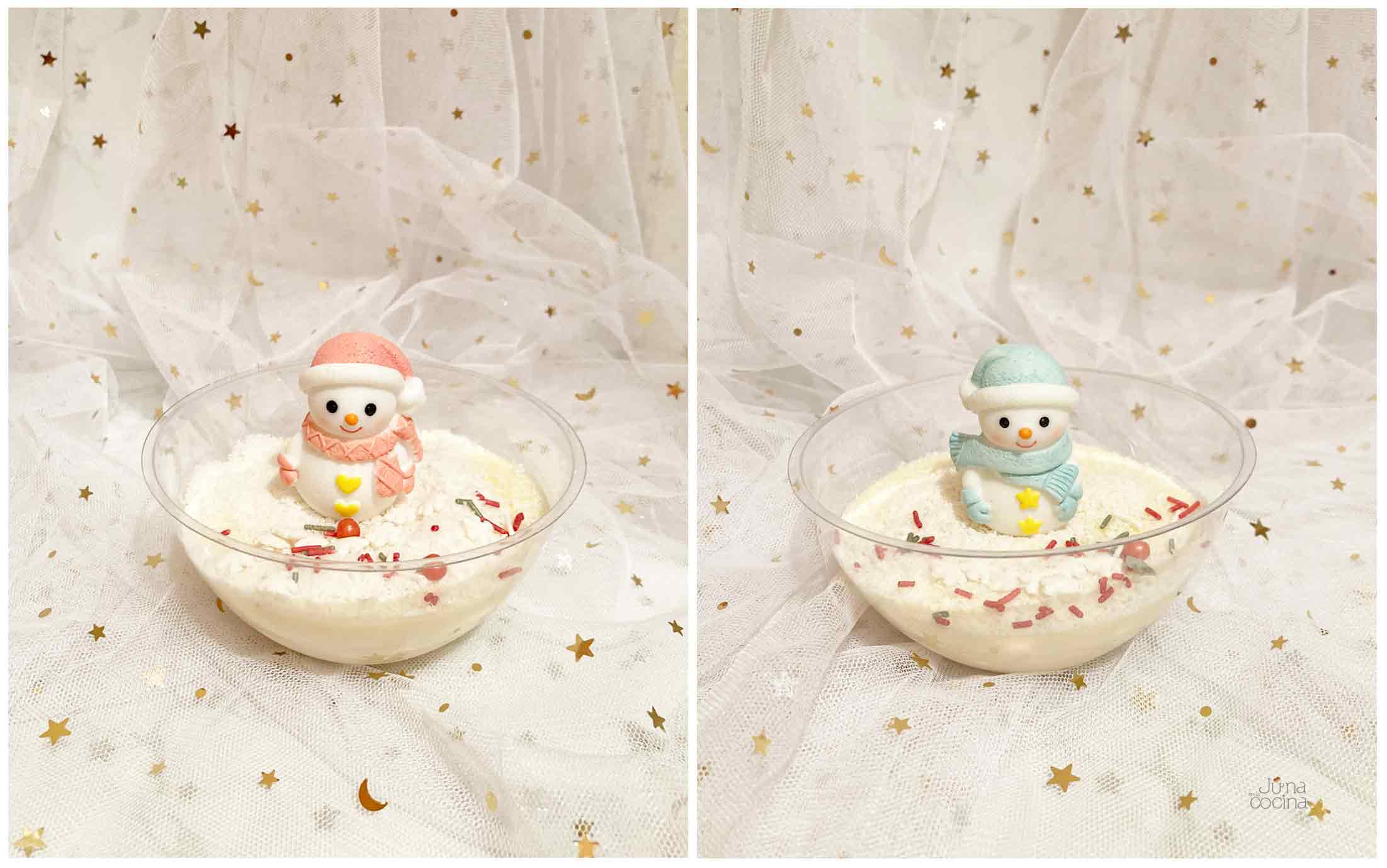Esta panna cotta de chocolate blanco es muy sencilla, por encima lleva un poco de coco, pero le podéis poner mermelada de fresa, arándanos…lo que más os guste. Eso si yo le he dado un toque navideño, han quedado estas bolas tan cuquis…bonitas y ricas. Mi receta para el retotusrecetas con mis queridas Elvira y Estela como jefas estupendas.